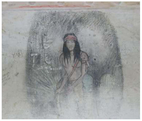 Figure 6. Drawing of Geronimo on prison wall, Navajo County Museum. (Anonymous artist; Photograph: Author.)
